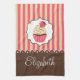 Pink & Brown Cute Cupcake With Custom Name Tea Towel