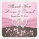 This 1.5" square shaped pink and brown wedding favour thank you sticker and/or envelope seal has a pink PRINTED ribbon and a pair of PRINTED glitter and diamond jewels joined hearts on it that matches the wedding invitation shown below. It is a perfect way to send out a beautifully coordinated thank you card, or you can use it to attach to your wedding favours. You can also choose a 3" size. If you require any changes, email niteowlstudio@gmail.com. ****PLEASE use caution if you change fonts, or the shape of the sticker, as part of the text and/or design may get cut off when printed. Zazzle will not edit anything, and I will not see it before it prints, so please email me BEFORE you order if you need anything changed.