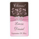 ****PLEASE NOTE that these are standard Avery labels and are not water-proof. This pink and brown floral wedding wine label has a PRINTED ribbon with a PRINTED FAUX glitter and diamonds jewel joined hearts brooch on it that matches the wedding invitation shown below. If you need assistance, or require any additional matching items, please email your request to niteowlstudio@gmail.com.