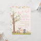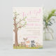 Pink Brown Girl Watercolor Woodland Animals Invitation