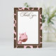 This 3.5x5 stylish girl's baby shower or birthday flat thank you card has a soft pink and dark chocolate brown giraffe pattern background with a brown, pink, and white frame in the middle. At the bottom, there is a cute zebra head peeking around the corner. At the top, Thank you is written in a brown trendy cursive font. Some design elements are by STOCKBERRY STUDIO.