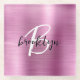 This elegant personalised coaster features a monogram and first name in modern black and white script on a pink brushed metal background.