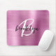 Pink Brushed Metal Black White Script Monogram Mouse Pad