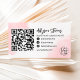 Modern Simple abstract pink watercolor brushstroke hair makeup photo logo qr code with a brushed script typography add your logo, qr code, business photo and your social media. With an elegant signature script font, all the colours are editable.