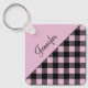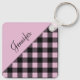 Pink Buffalo Plaid Check Pattern Name Keychain