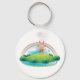 Pink bunny playing a guitar atop of a hill with a rainbow. This design looks really effective on these Keychain