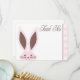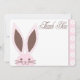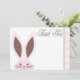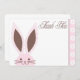 This is a cute thank you card. It features a bunny rabbit in a pink colour with brown features. There are white daisies on a pink background on the rabbits ears and on the side. To customise this card just click on the customise button. The back of the card is blank so you can add additional information.