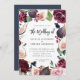 Pink, burgundy and fig watercolor floral wedding invitation. Watercolor floral, foliage and hand painted fruit. Part of a wedding suite. Background colour can be customised.
