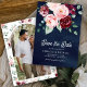 Pink Burgundy Floral Photo Navy Blue Wedding Save The Date