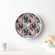 Pink, burgundy watercolor flowers clock