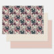 Pink, burgundy watercolor flowers wrapping paper sheet