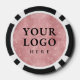 Poker chips for employees or clients to celebrate the 25th anniversary of your business. Commemorative design personalized with your company logo and the year on the front, with a faux pink glitter background, a laurel branch, and stars. On the back, it has space to add a bigger logo or an image, and it can be changed to text by clicking the button to edit the design.