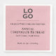 These custom corporate event or party napkins feature a sample logo placed at the top which you can replace with your own custom business or company logo. The corporation or host name is printed below the logo, followed by the event location and date printed below. The background is a dusty pink bubblegum colour. It's perfect for a gala, office party, charity event, or other business celebration.