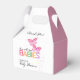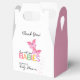 A cute butterfly themed baby shower favour box featuring two pink butterflies is perfect for a twin girls baby shower. The design offers space to say "thank you" to your shower guests and personalise with the name of the mother-to-be.