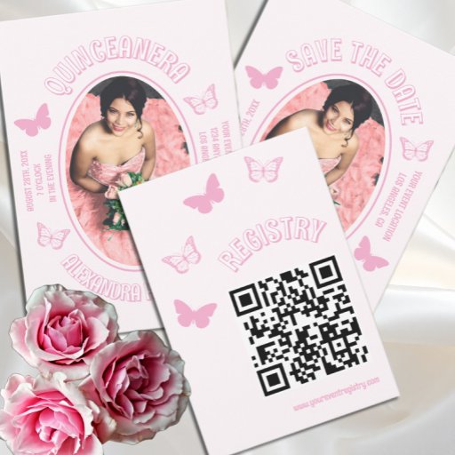 Pink butterflies quinceanera. Photo template via Pixabay licensed under CC0 and must be replaced with your own photo
