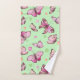 A Pattern Of Pink Butterflies On A Green Background Bath Towel Set For Any Type Of Bathroom Décor.