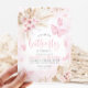 Pink Butterfly Boho Flowers 1st Birthday Floral Invitation