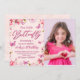 Step into a whimsical garden where delicate pink butterflies flutter among blooming flowers and celebrate your Birthday Party, this invitation is made special with pastel pink background and floral decorations on all sides with matching fonts to give the invitation the stylish modern vibe