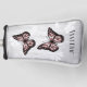 Protect your golf clubs with this unique Pink Butterfly Floral Personalised Golf Head Cover. Cover design features a pair of vibrant butterflies resting on a white floral vine against a light grey grunge background. Additional gift items available with this design as well as a variety of colours.