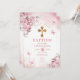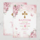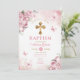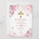 Pink Butterfly Girl Baptism Gold Cross Flowers Invitation