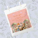 Celebrate your little one's special day with these charming, personalised Woodland Animals 1st Birthday favour bags! Each bag features an adorable scene of a cute bear, fox, squirrel, and rabbit having a delightful party in the forest. Woodland animal friends enjoy delicious cakes and drinks around a tree stump table, surrounded by lush greenery and vibrant trees. The whimsical illustration, set against a soft pink background, perfectly captures the joy and enchantment of a little girl's first birthday. These favour bags are adorned with fun script font calligraphy in a playful and elegant way, adding a personal touch to each gift. These thank you favour bags are not only practical but also a beautiful keepsake for your guests to remember this magical celebration.