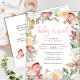 Pink Butterfly Rose Floral Green Girl Baby Shower Invitation Postcard