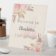 Pink butterfly roses pampas Baby Shower welcome Pedestal Sign