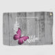 Personalise a unique towel for golfing with a Pink Butterfly Rustic Personalised Golf Towel. Towel design features a vibrant butterfly resting on delicate foliage with a space to add your name against a rustic wooden background. Additional gift items available with this design as well as a variety of colours.