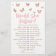 Pink Butterfly Would She Rather Bridal Shower Game Stationery