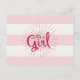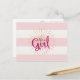 Pink Cabana Striped Baby Announcement Postcard