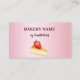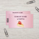 A pink gradient background. Decorated with a cheesecake with a red strawberry. Personalise and add your name and text on front.