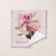 This modern floral illustration features blooming camellia flowers in shades of pink, magenta, and white with golden line accents and geometric frame layers. Perfect for personalised gifts, this elegant design is ideal for home decor, wall art, pillows, and phone cases. Customisable elements available for name or message.