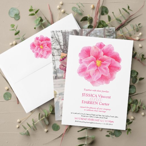 Wedding favour tent box ideal for showing your appreciation to your attendants to your wedding. Modern pink watercolor art painting in shades of pink and white. Part of the matching camellia watercolor art wedding stationery set. Give your guests wedding party gifts and favours in these beautiful wedding favour tent style boxes. Customise with your own bride and groom's name and wedding date. Unique watercolor art and design by Sarah Trett. www.sarahtrett.com for www.mylittleedenweddings.com
