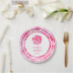 Pretty pink camellia flower wedding custom paper plates. A contemporary wedding disposable plate featuring a camellia watercolor art painting. Perfect for a pink spring or late winter wedding. Edit these paper plates with your own words. Original watercolor painting and design by Sarah Trett. www.sarahtrett.com for www.mylittleedenweddings.com