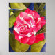 with original design from watercolour painting by Sacha Grossel of bright pink Camellia flower on leaf green background. This fuschia coloured floral design is botanical in inspiration with bright colour intensity through the close up, macro style of plant. For flower and Camellia lovers everywhere.