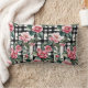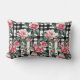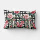 Pink Camellias On Black And White Plaid Stripes Lumbar Cushion