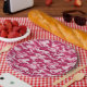 These girly camo plates feature a camouflage pattern in shades of dark pink and pale pink.