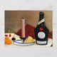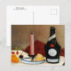 A fine art postcard with the painting by Henri Rousseau (1844-1910), The Pink Candle (1910). A still life of a bottle of wine, cheese and a pink candle. Rousseau was a French Artist, who painted in the Folk Art or Naïve style and was self-taught.