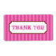Vibrant pink stripes decorate these thank you labels. The designs are from original art.