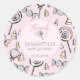 This cute pastel Pink Candy Themed Baby Shower Thank You Sticker features cute hand-drawn candy-themed illustrations against a soft pink background.