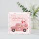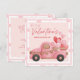 Pink Car Heart February 14. Valentine's Days Cards. The front of the card features a Happy Valentine's Day message written in a cute font, surrounded by sweet hearts in the truck hand-drawn illustrations. The back of the card has space for your own personal message, along with a cartoon illustration of a sweet couple. Overall, this card design captures the playful and romantic spirit of Valentine's Day, making it a perfect choice for expressing your love and affection to a special someone.