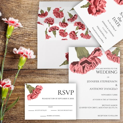 Pink Carnations Luxe Modern Floral Save the Date Invitation