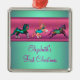 Pink Carousel Teal & Purple Baby's Frist Christmas Metal Tree Decoration