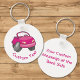 Pink toy cartoon car. Custom background colour. Custom text on both sides.