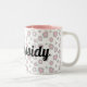 Kids love to have their own mug! Personalise this monogrammed mug with her name and she'll be delighted to have her very first big girl mug! Very cute cat done in sweet pink animal print.