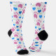 Pink Cat Paws Blue Hearts Green Meow Pattern Socks