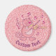 Handrawn pink cat cartoon playing the violin. Custom text.