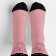 Handrawn pink cat cartoon playing the violin. Seamless pattern background of music notes. Custom background colour. Custom top stripe colour. Custom text on each sock.