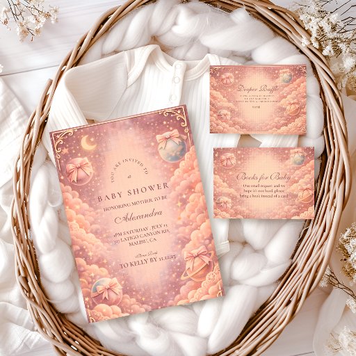 Pink Celestial Bows Clouds Baby Shower Invitation