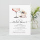 This bridal shower invitation features a scrumptious looking watercolor pink and white layered dessert with pink champagne. Indulge in a spread of sweet and savory delights as we toast to the bride-to-be, amidst charming décor and cherished company.